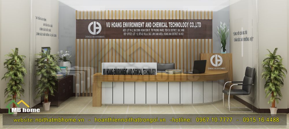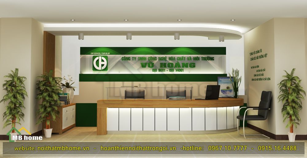 Đây được coi như là bộ mặt của công ty khi đón tiếp khách đến, vậy nên việc lựa chọn nội thất hay sắp xếp vị trí là vô cùng quan trọng và cần hoàn chỉnh. noithatmbhome đã đưa ra hai gợi ý thiết kế cho anh Hoàng chọn lựa.