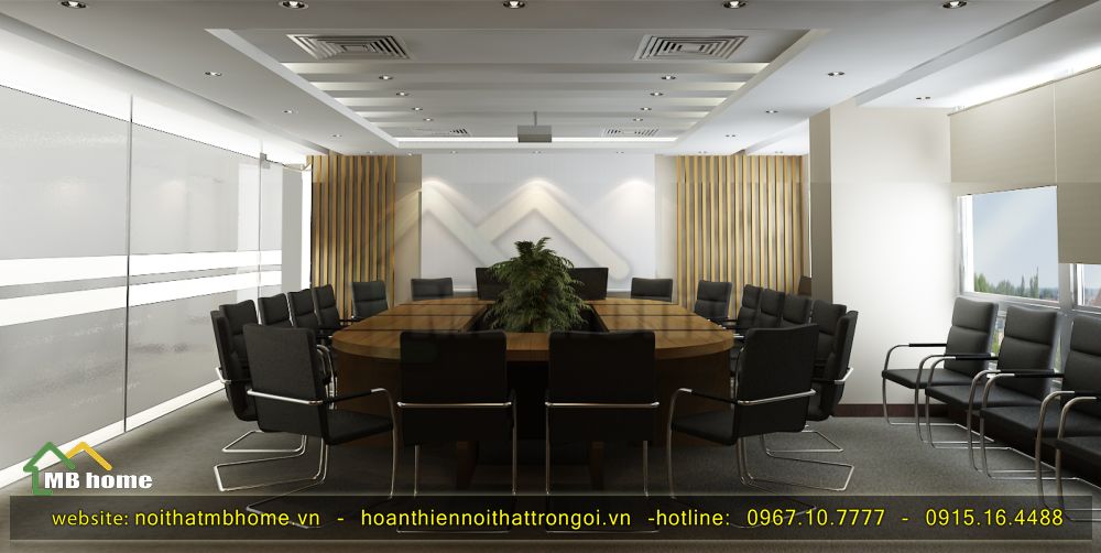 Ngoài ra kiến trúc sư khuyến khích sử dụng mẫu bàn rộng và có dáng oval để mọi người ngồi trong đó đều có thể nắm bắt được hết thông tin cũng như dễ dàng trao đổi với nhau hơn. Ngoài ra cần có các máy móc công nghệ như máy chiếu, tivi, điều hòa,..