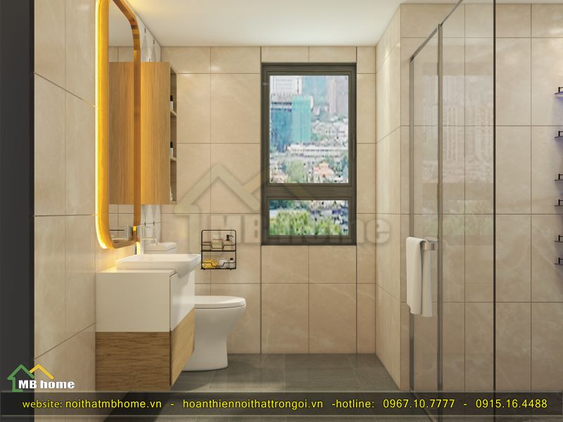 Tuy rằng diện tích ít nhưng vẫn được thiết kế đầy đủ nội thất và thiết bị bên trong với phòng tắm bằng kính vô cùng sang trọng và hiện đại.