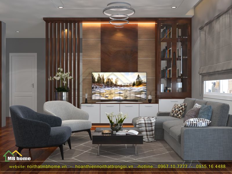 Thực sự phòng khách là nơi cực kỳ quan trọng bởi nó như là một khuôn mặt đại diện cho bạn vậy. Chính vì thế chúng ta không thể làm qua loa khu vực này được. Tại đây sử dụng nhiều chủ yếu là tone màu xám trắng với sự nổi bật của màu gỗ nâu. Các ghế sofa được lựa chọn kỹ càng các màu hay kiểu dáng sao cho phù hợp với diện tích và nhu cầu của gia chủ. Nhưng vẫn cần phải đảm bảo có đầy đủ tiện nghi sử dụng.