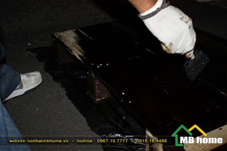 Sau công đoạn làm nhẵn và bóng bề mặt cho chiếc bàn trà của chúng ta, các bạn dùng sơn dành cho đồ gỗ nội thất có bán tại các cửa hàng rồi sơn lên sản phẩm của mình, đợi sơn khô nhé.