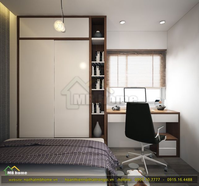 Thiết kế phòng ngủ và phòng làm việc tinh tế