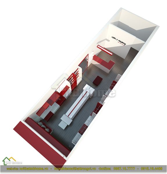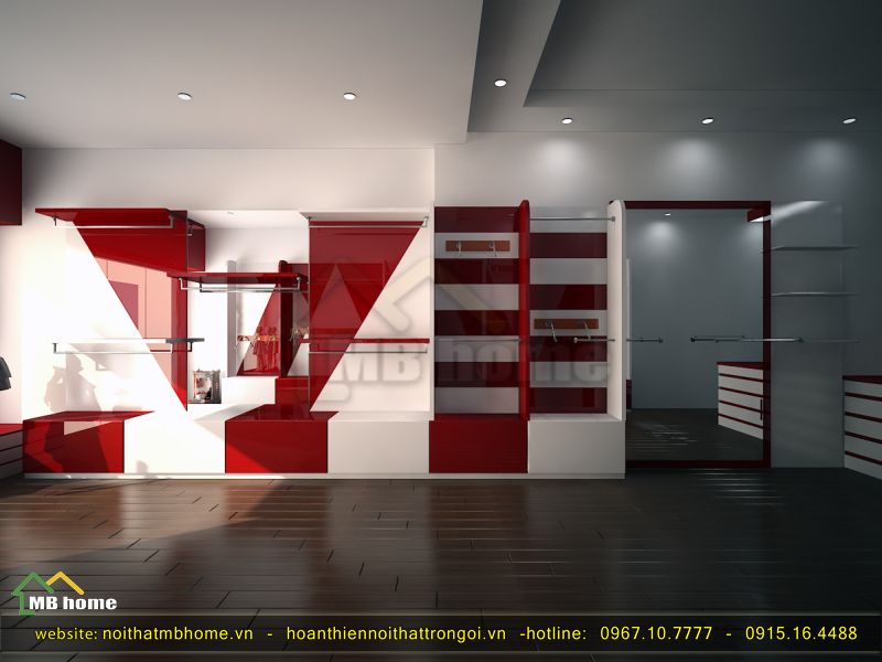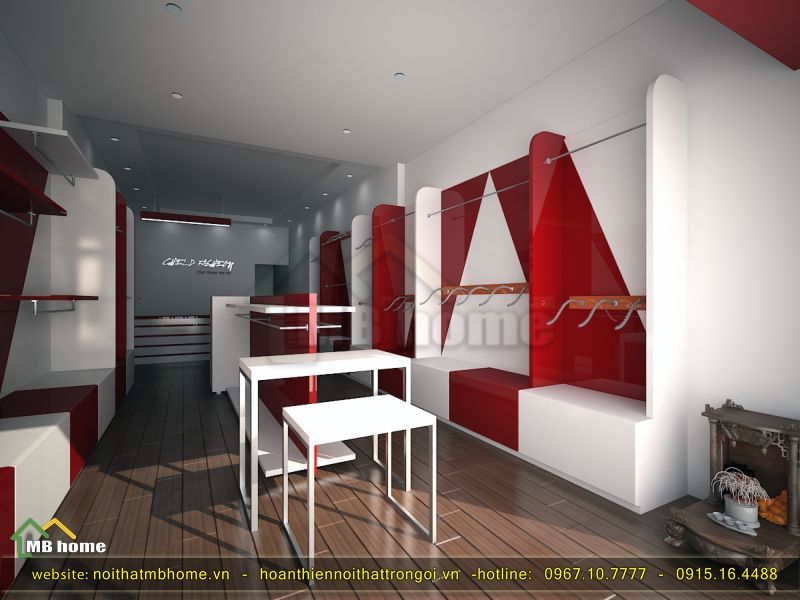 Tone màu chủ đạo mà chủ shop lựa chọn đó chính là màu đỏ và trắng, sau khi được sự tư vấn của đội ngũ MB Home. Màu trắng được ví như sự thanh thoát, chỉnh chu và sang trọng.