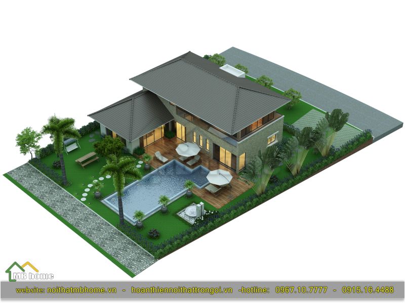 - Thiết kế biệt thự theo tính năng sử dụng: Bể bơi, sân vườn, phòng ngủ,..
