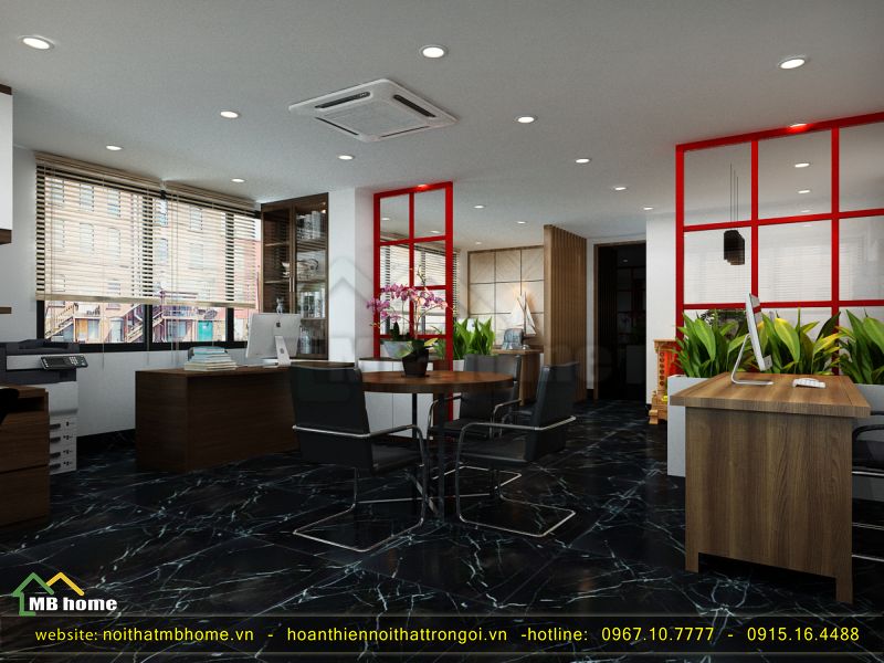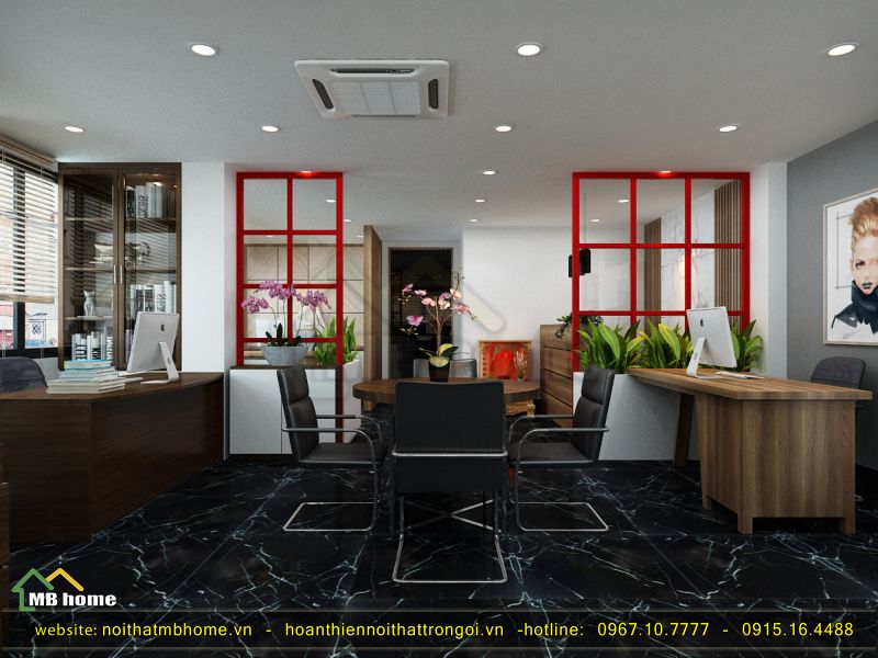 Thấy thú vị và bắt mắt chỉ bởi một vài chi tiết trang trí lựa chọn thôi cũng đã tạo nên một văn phòng sáng tạo, thu hút ánh nhìn từ mọi người. Màu trắng đen của sự sang trọng, màu nâu gỗ ấm cúng, đỏ của sự trẻ trung năng động và màu xanh lá của cây cỏ tự nhiên tạo sự thoải mái và mát mắt. Sự kết hợp của kiến trúc sư MB Home quả thực rất thú vị và ấn tượng.